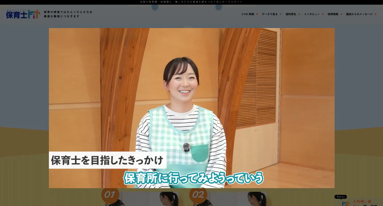 「保育士FIT」は、保育士採用に特化した求人エージェントサイトです。 厳選された保育園のみが掲載され、求職者と保育園の理想的なマッチングを実現します。登録・利用は完全無料で、採用活動を効率化しながら、より良い人材との出会いをサポートします。